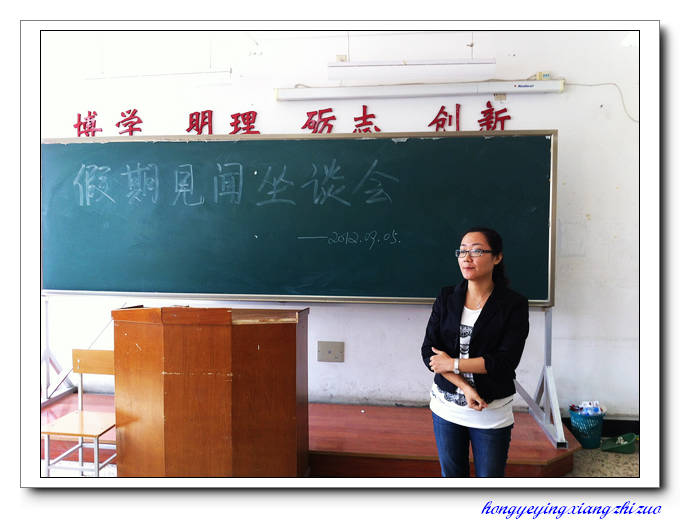 2012年9月5日东语学院2011级韩语三班在黑大附301教室中召开学生课堂自律以及假期见闻座谈会活动,2011级辅导员刘慧颖老师出席了本次活动。会议主要目的是让同学们更好地加强自律性以及分享假期见闻经历给自已带来的感悟与体会。