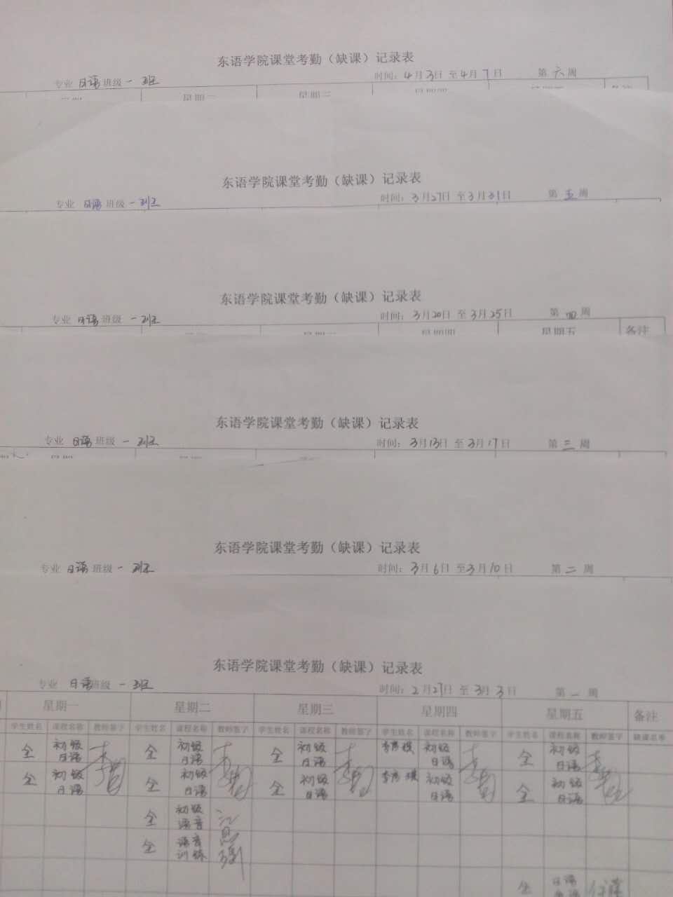 学院每节专业课均由学委进行课堂考勤,并将考勤情况交由任课教师确认并签字,汇总至辅导员处,师生共同监督每节课学生的出席情况,及时、高效、不留死角,共同为学生上课秩序、上课质量提供保障。