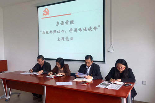 5月16日下午,东语学院在主楼D321会议室开展了“品经典照初心,学讲话强使命”主题党日活动。学院党总支书记赵恩忠、副院长赵志刚、段智婕以及全体师生党员参加。活动由副院长孙颖主持。