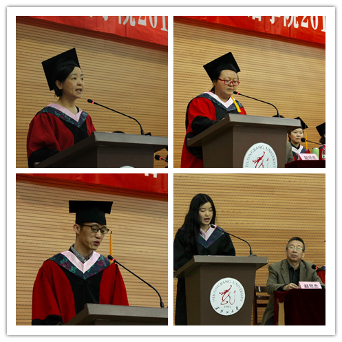 典礼在嘹亮的国歌声中拉开帷幕。2018届优秀毕业生郭凌宇代表全体毕业生发表讲话,感谢四年来学院的培养和老师的悉心栽培。她表示,每一位从这里走出去的东语人都将不忘初心、牢记使命,用饱满的热情投入到社会建设中去,回报母校、回报社会。日语系教师代表松尾茂、朝鲜语系教师代表张晶、阿拉伯语系教师代表李伟分别发表讲话,表达了他们对于毕业生的祝福,期待大家走出校门后能够有新进步、新作为。随后,赵恩忠书记宣读了关于表彰2018届优秀毕业生的决定,段智婕副院长宣布了东语学院2018届校友理事会的成员名单。孙颖副院长代表学院致辞,她表示,看到同学们从初入校门的懵懂少年成长为社会栋梁,感到十分欣慰。纵使离开了大学校园,也要牢记在这里学到的每一课,并把它们运用到工作生活中去,学校是同学们坚实的后盾,欢迎大家回家看看。