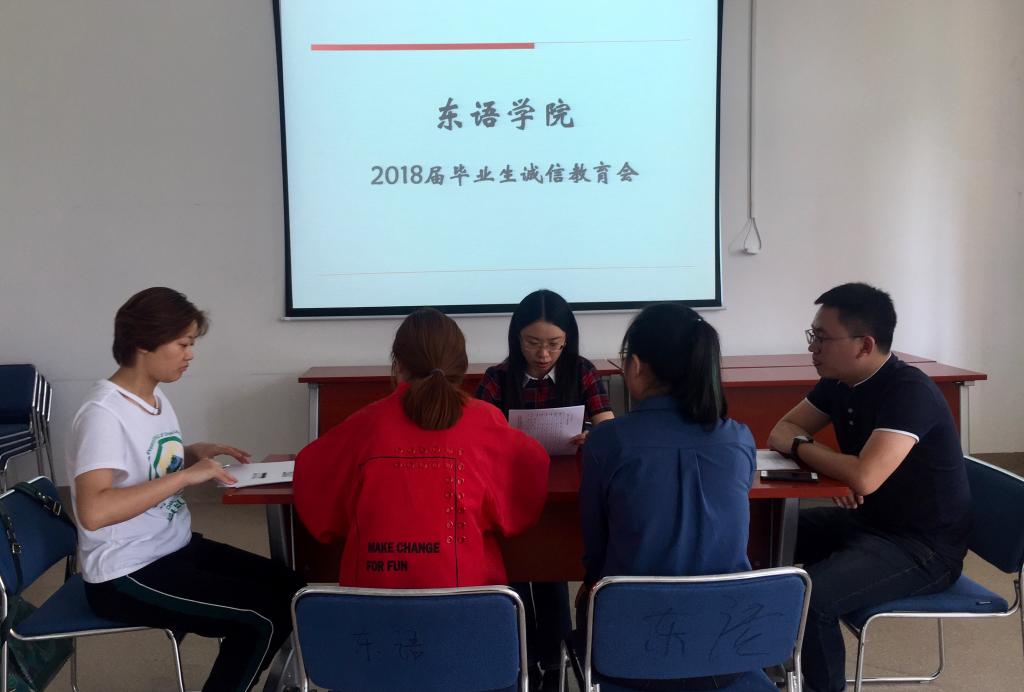 根据《学工部:关于开展学生资助诚信教育主题活动的通知》要求,5月22日上午9:00,东语学院在主楼D321室召开2018届毕业生诚信教育会。会议由东语学院团委书记、2014级辅导员隋玚老师主持,学院尚未还款的全体生源地、校园地贷款毕业生参加。