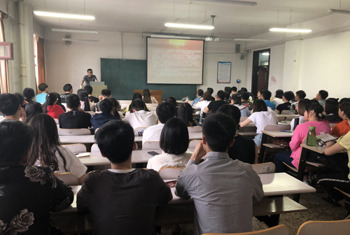 5月22日下午13:30,西语学院、东语学院、农业资源与环境学院、数据科学与技术学院联合在汇文楼373教室举办“逆风飞扬,我的国”主题毕业生党员离校“最后一堂党课“教育。马克思主义学院副院长张云贵老师担任主讲人,来自四个学院的90余名2018届毕业生党员参加本次活动。