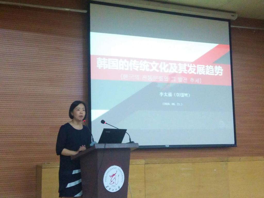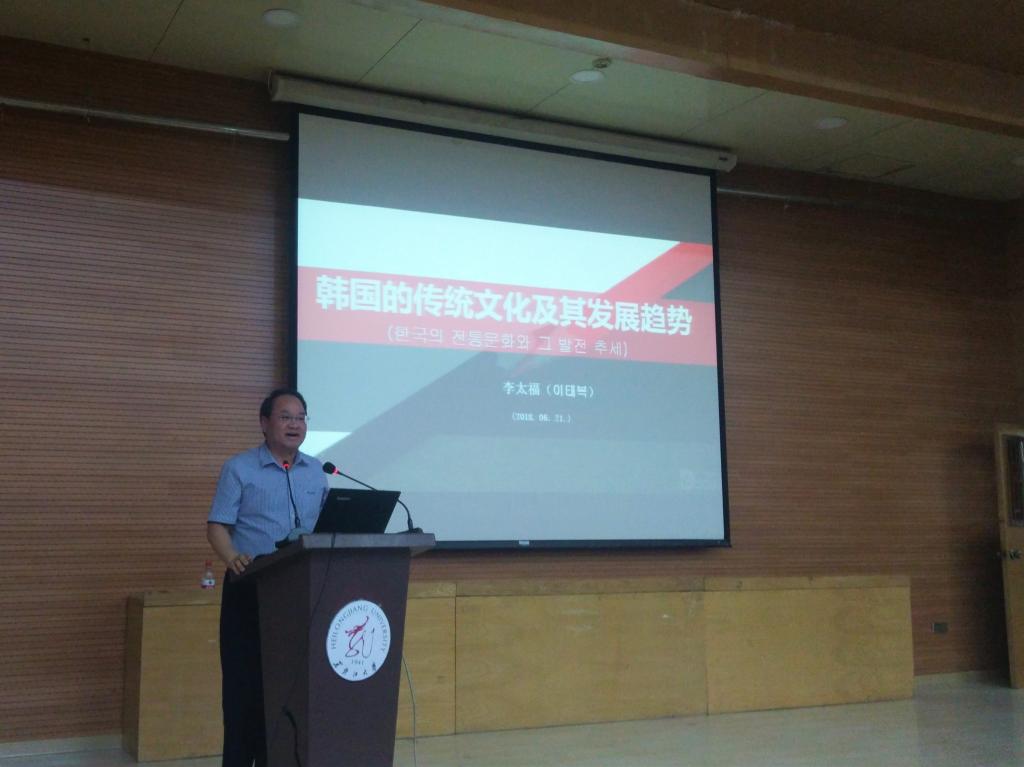 为激发学生们的学习热情,进一步加深朝鲜语专业学生对韩国文化的了解,6月21日下午15时30分,东语学院在阳光讲坛举行了主题为“韩国的传统文化及其发展趋势”的讲座,东语学院副教授李太福主讲。东语学院党总支书记赵恩忠、副院长段智婕以及东语学院部分教师代表出席了本次讲座。讲座由东语学院副院长孙颖教授主持。2015级、2016级、2017级朝鲜语专业学生参加本次讲座。